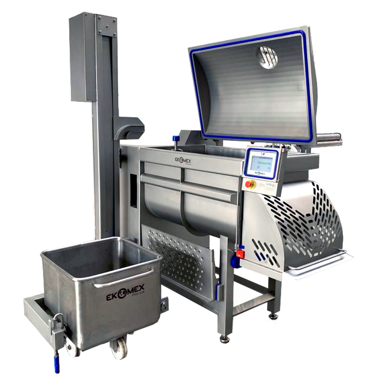 Stroj určený k intenzivnímu míchání všech druhů hrubě mletých masných výrobků bez použití vakua.